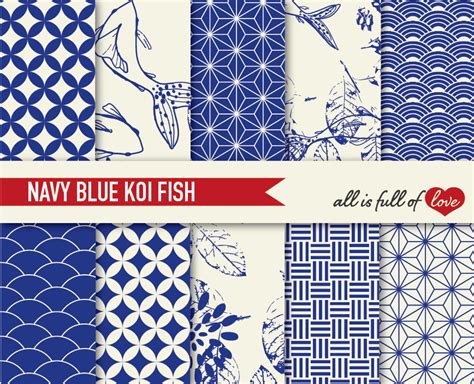 Download Free Navy Blue Patterns Koi Fish Backgrounds Set Files For Crafts